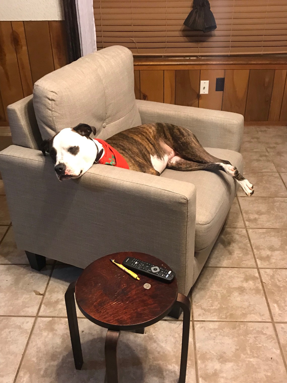 Thankfully, she is not a puppy and is used to being at home during work days. She was too cute this morning when my kids left. Her head hung low and her tail was tucked between her legs. She knew they were leaving for a while. However, when she realized I was staying as I shut the door, she bounced back to life.