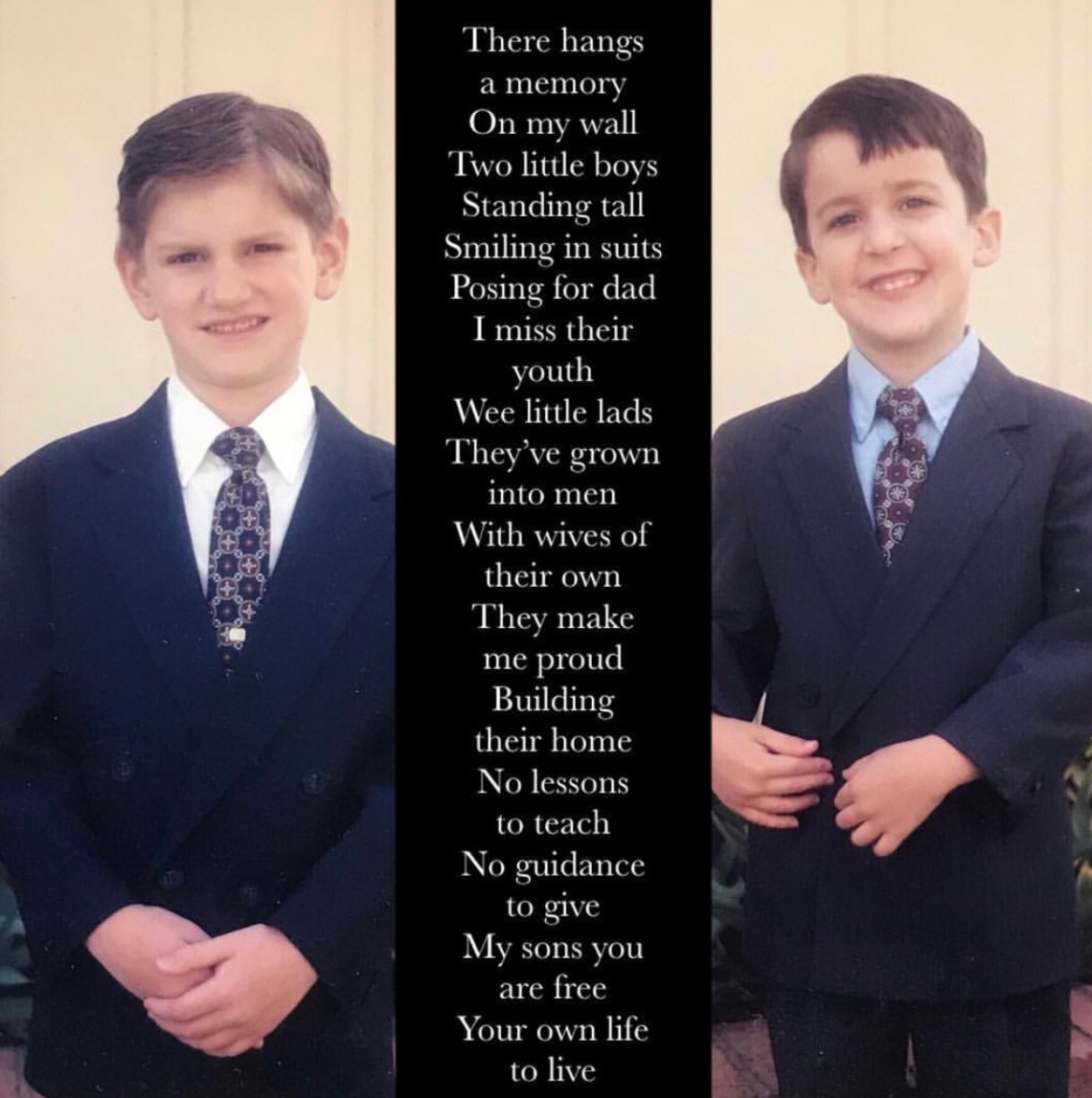 In this short duration we call life, everything seems to be picking up speed. It seemed yesterday they were both five and seven and I was taking their Easter pictures dressed in their little man suits. They were so cute and innocent. Now, one is gearing up to be a dad with his lovely wife and the other is married with a great gal and life.